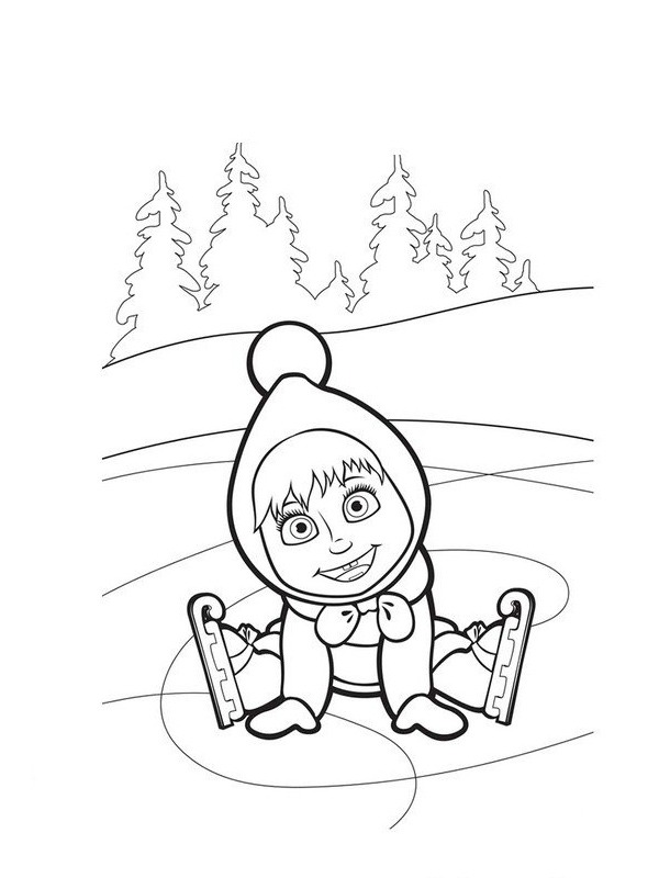 Coloriage Masha sur la glace